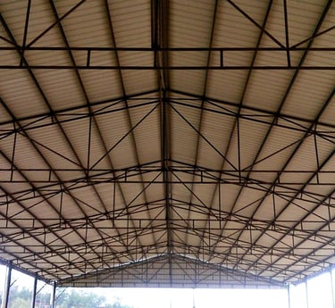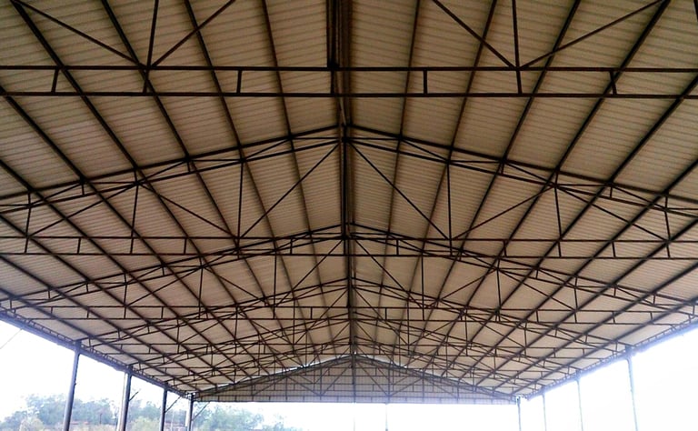 Muestra de diseños y montajes de techos metálicos fabricados.